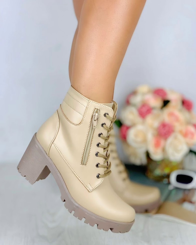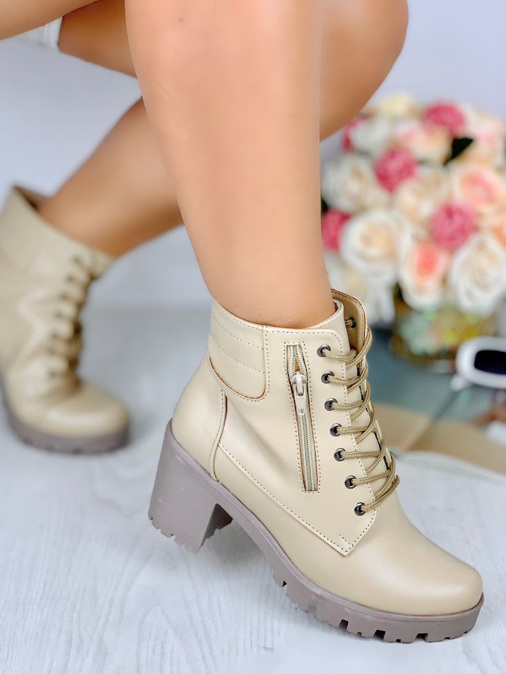 Regular price $300.00These beige block heel lace-up boots feature a sturdy sole and a convenient side zipper for easy wear. The combination of a chunky heel and a lace-up front adds both style and comfort, making them ideal for casual or dressier outfits. Designed for practicality without sacrificing fashion, these boots bring a modern edge to any look.
