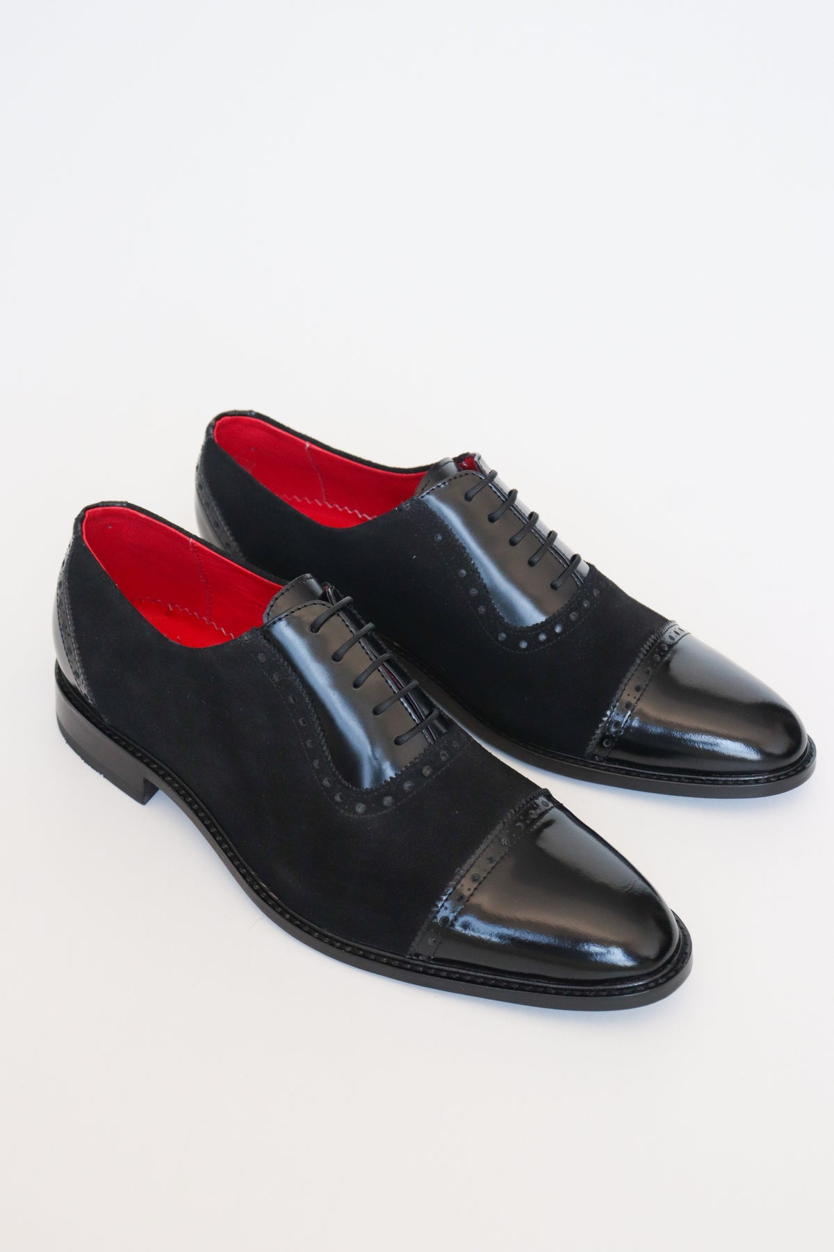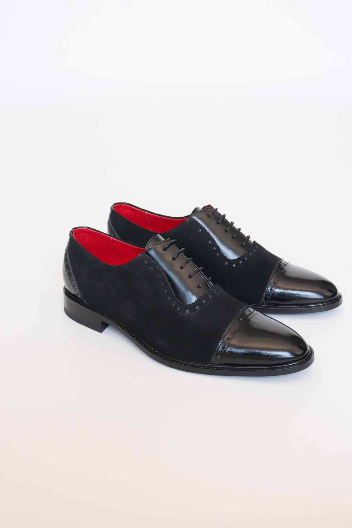 Step into sophistication with the Bold Contrast Black Leather Suede Dress Shoes by Deminis Atelier. These impeccably designed shoes are crafted with premium black leather and suede, offering a striking contrast that exudes elegance and style. Perfect for formal occasions, business meetings, or a night out, these dress shoes ensure you make a lasting impression. The sleek design and comfortable fit make them an essential addition to your wardrobe. Elevate your fashion game with these distinguished dress shoes from Deminis Atelier.