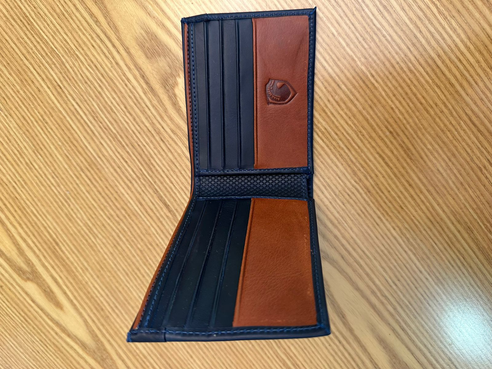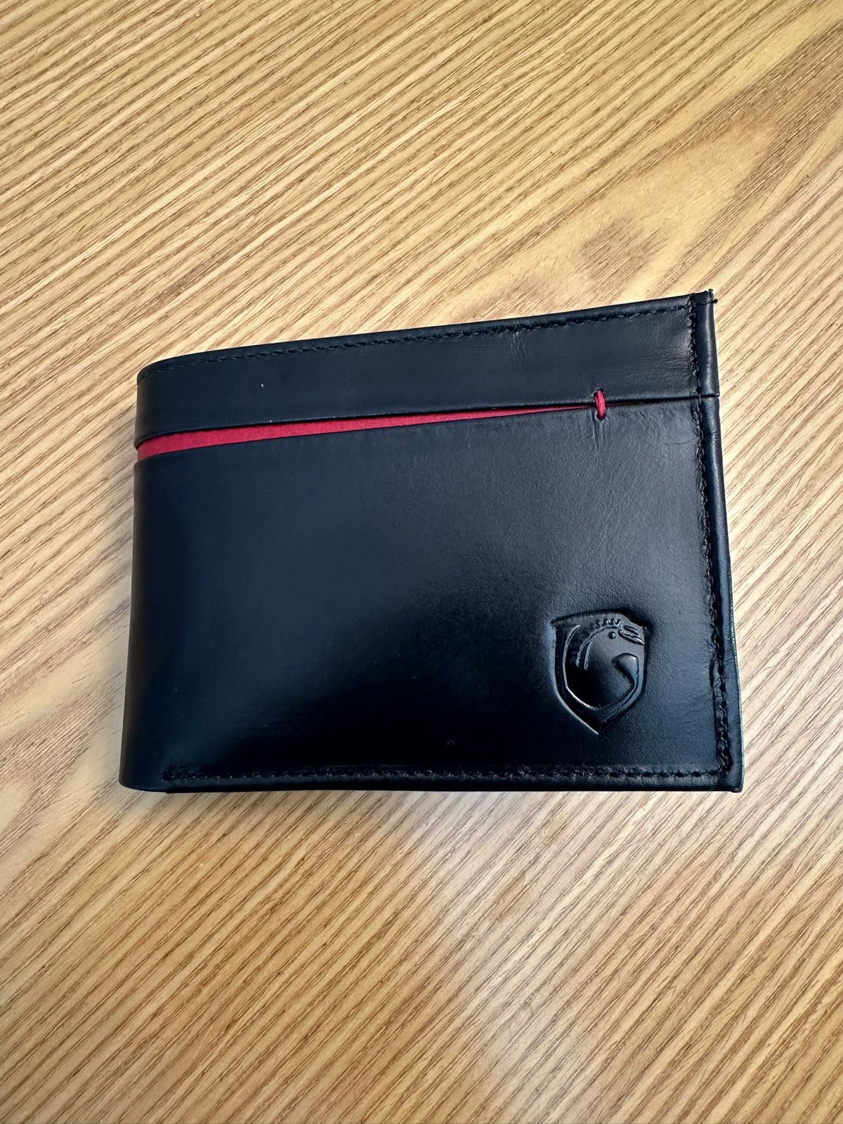 Crafted for the modern man, the Dual-Tone Prestige Wallet features smooth black Colombian leather on the exterior, accented with a bold red trim for a touch of distinction. Inside, its caramel brown compartments provide organized storage with a refined contrast, ensuring style meets function. Handmade by skilled artisans, this piece embodies both elegance and durability — perfect for those who appreciate details that speak volumes.
