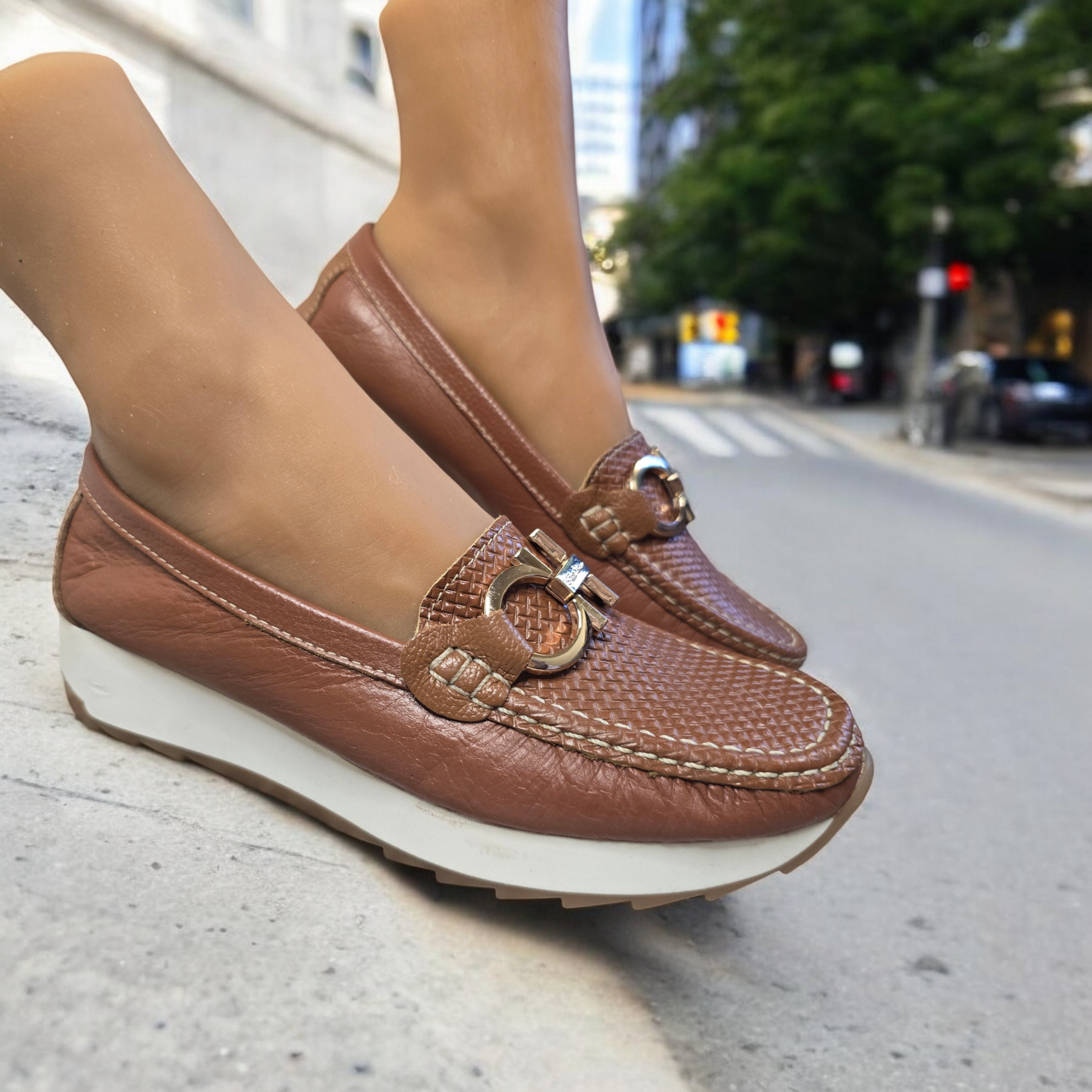 - Designed with a loafer sole to provide extra height and comfort throughout the day.