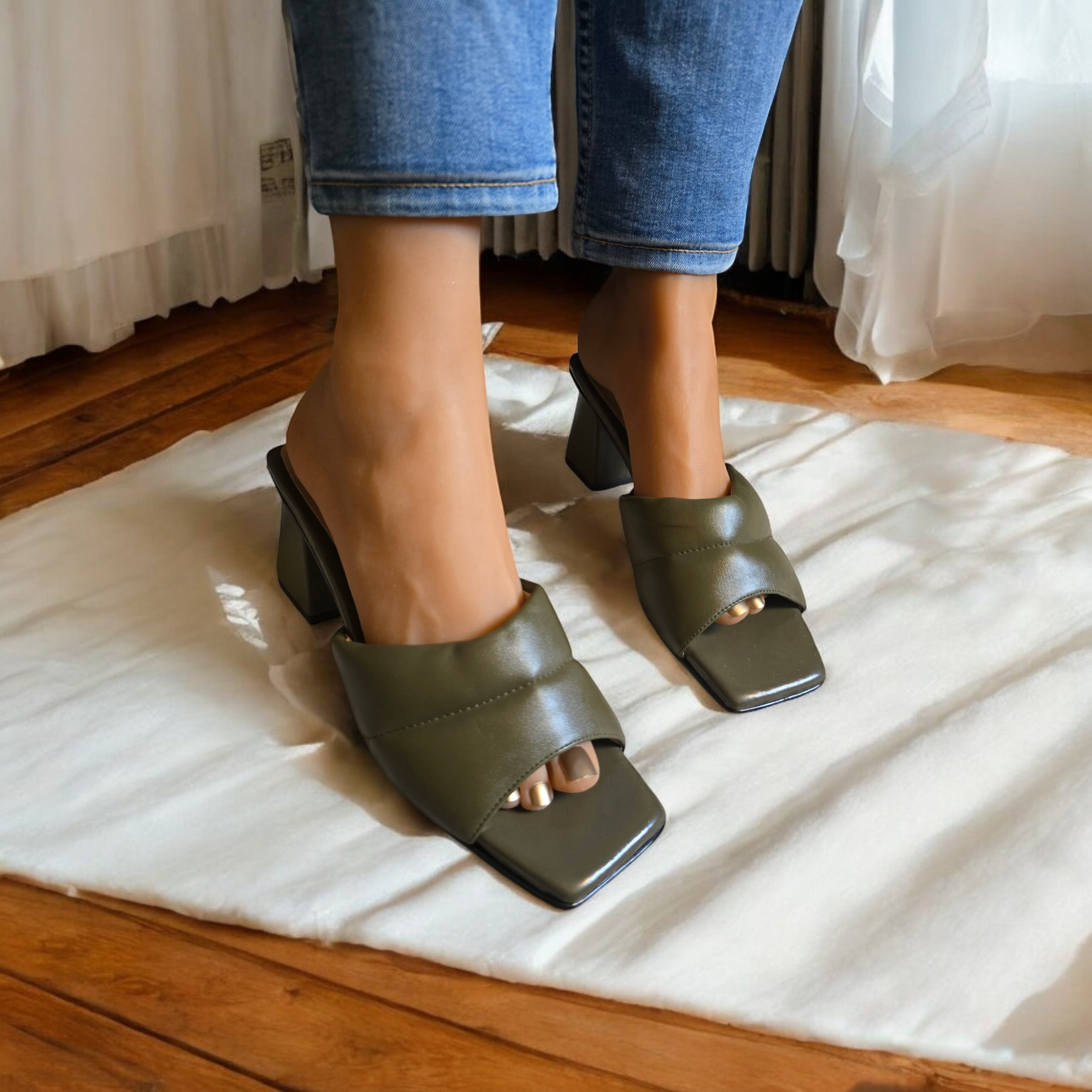 Pair these padded mules with cropped jeans and a cozy knit sweater for a relaxed yet stylish look, or wear them with a flowy skirt for a chic, effortless vibe. These mules are perfect for adding comfort and style to any casual outfit.