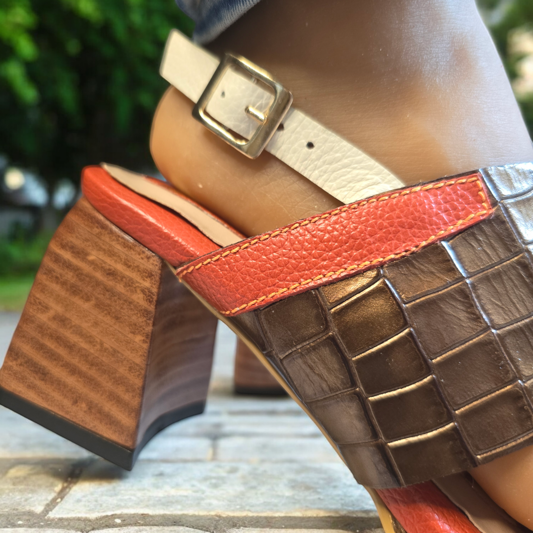 - Crafted with a mix of leather textures, including a crocodile pattern and smooth finish.