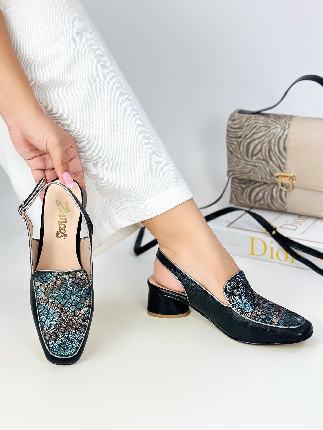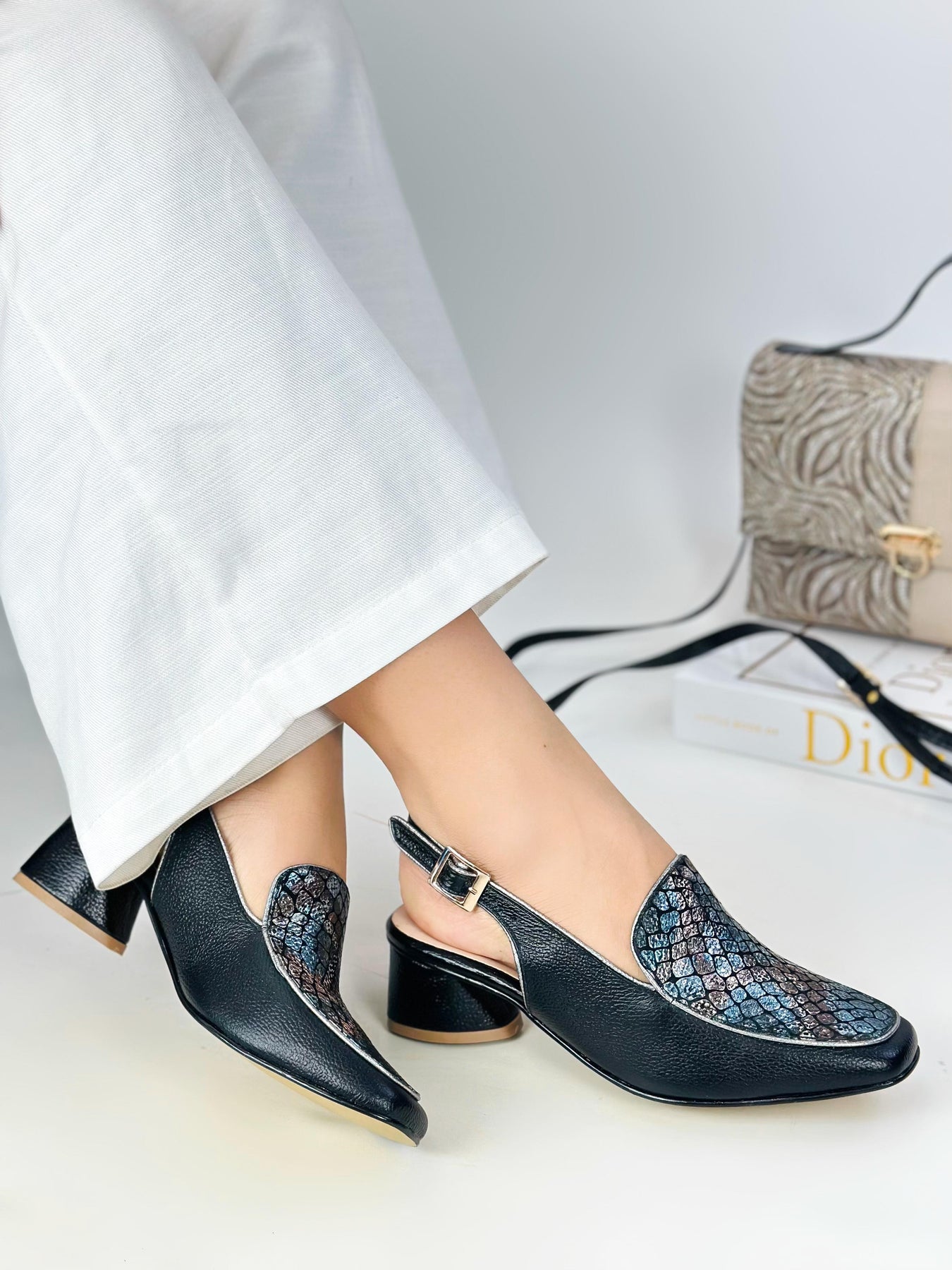 Solution: Finding a shoe that combines the relaxed feel of loafers with the structure of heels can be challenging, but these slingback loafers solve that issue effortlessly. The slingback strap offers the security of a sandal while the enclosed front provides the sophistication of a loafer, making them perfect for transitional outfits or unpredictable weather. Many don't realize that the textured design on the vamp is inspired by reptile patterns, a trend in high fashion that symbolizes luxury and individuality.