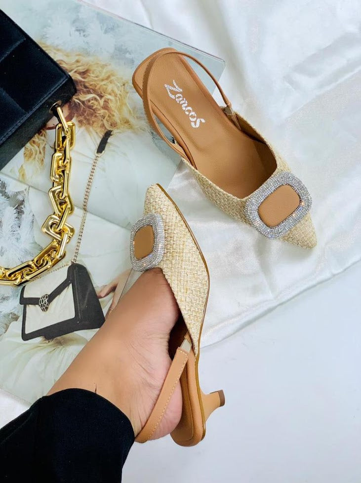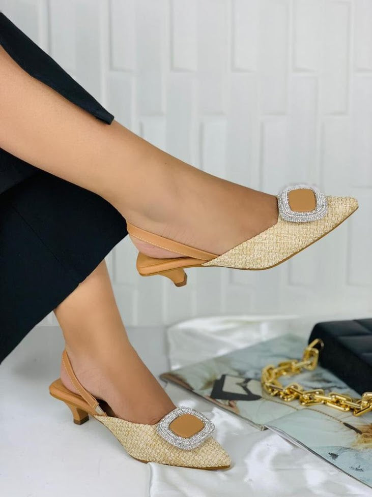Step into sophistication with Deminis Atelier's Yellow & Beige Faux Leather Heels. These exquisite shoes feature a plain and patterned yellow upper, beautifully complemented by a square silver diamond motive front decor. The golden square-shaped buckle closure adds a touch of luxury and ensures a secure fit. Designed with a small pencil shape heel, these heels provide the perfect balance of elegance and comfort. Whether you're dressing up for a special occasion or adding a chic touch to your everyday outfit, these heels are a must-have addition to your wardrobe.